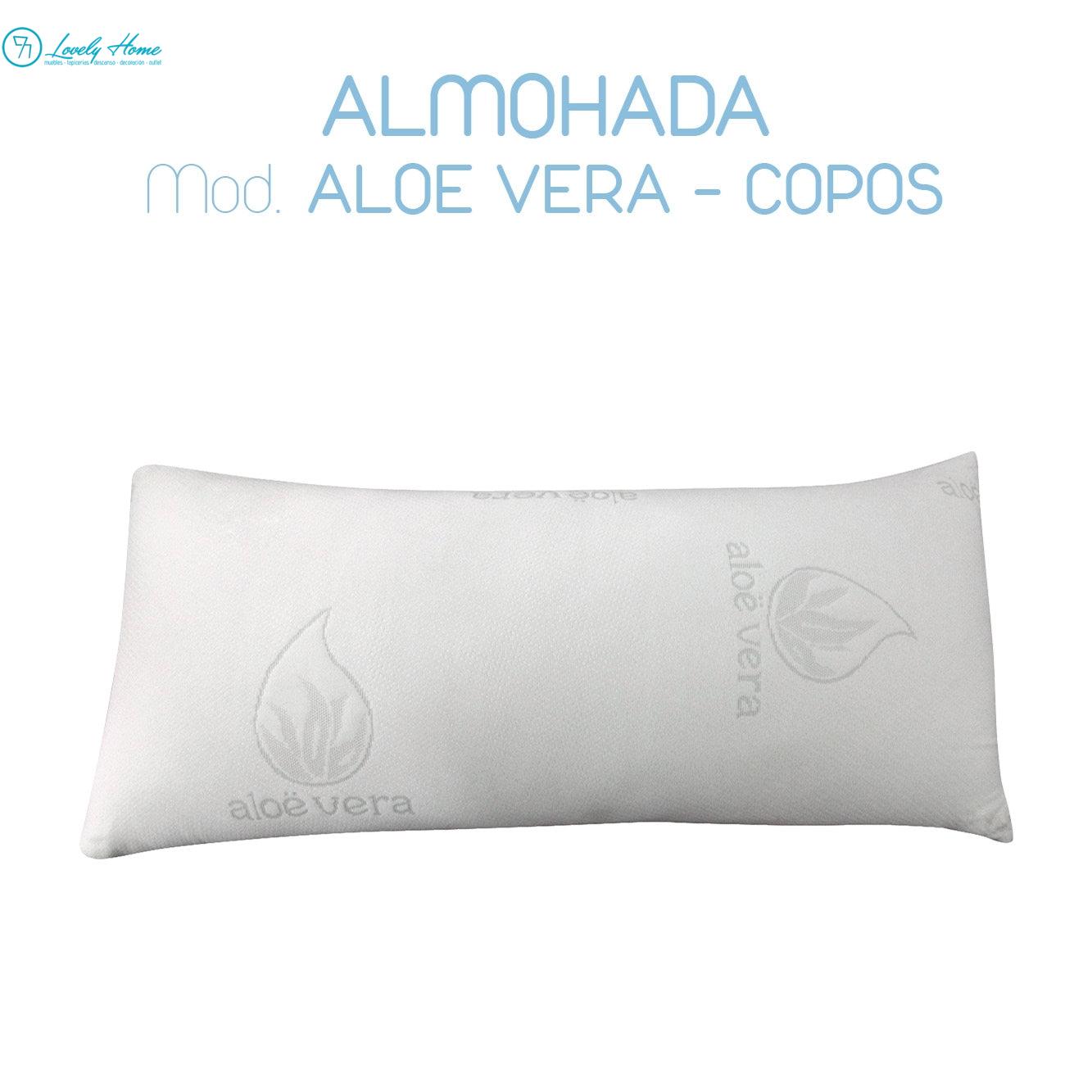 Almohada de copos viscoelástica que proporciona una perfecta circulación del aire, a su vez facilita la adaptación de cabeza y cuello en una posición correcta para el descanso con funda de Áloe-Vera de gran calidad y con cremallera.
