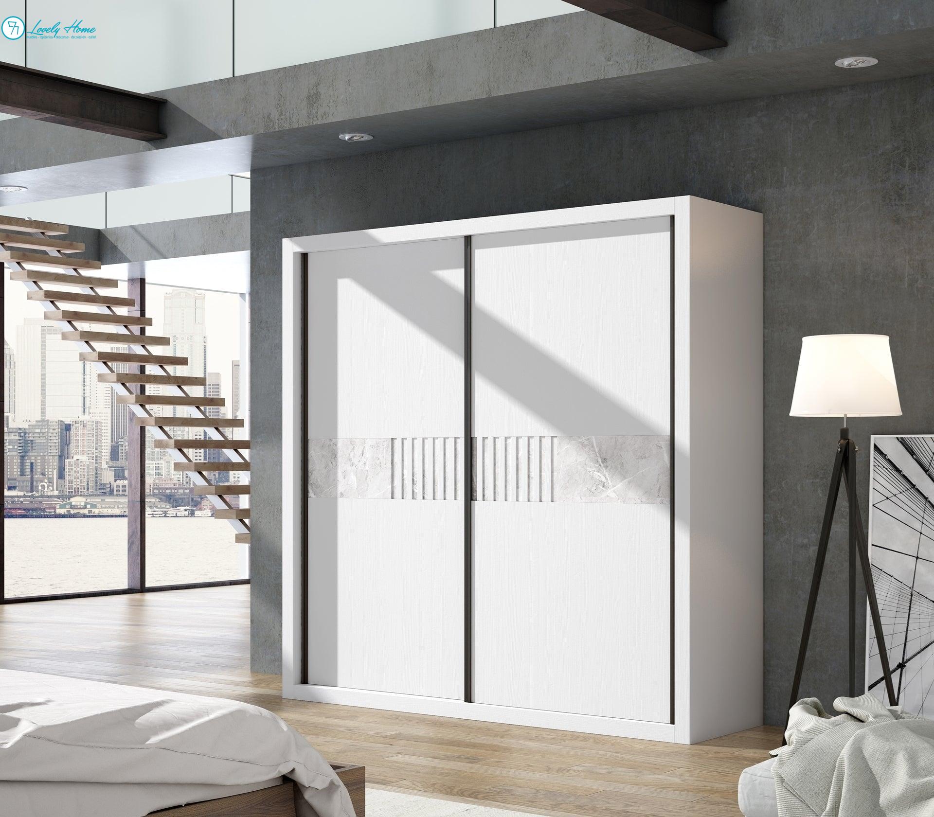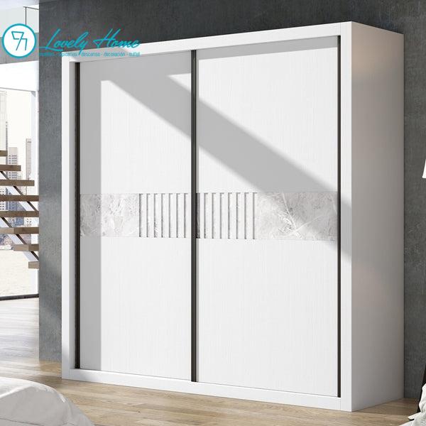 Este modelo de armario puertas correderas combina funcionalidad con un diseño moderno. Su acabado en blanco mate aporta luminosidad y se adapta a cualquier estilo de habitación, ya sea matrimonial o juvenil, convirtiéndose en un elemento práctico y decorativo a la vez.