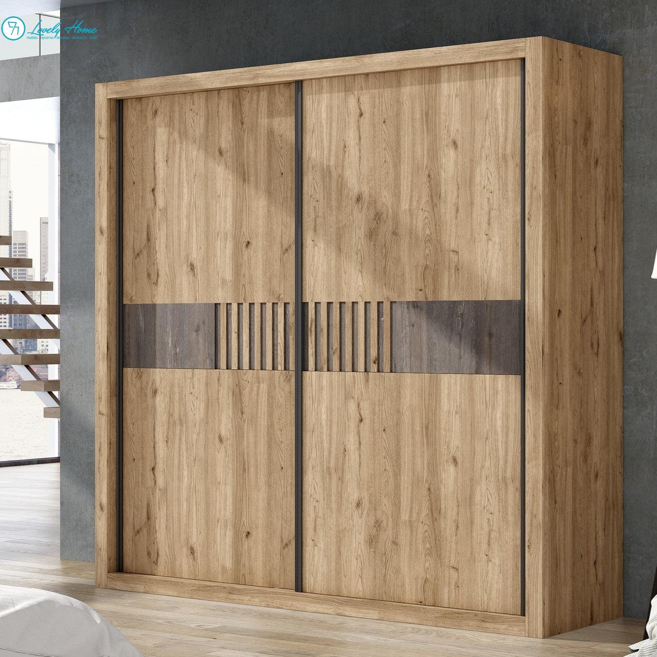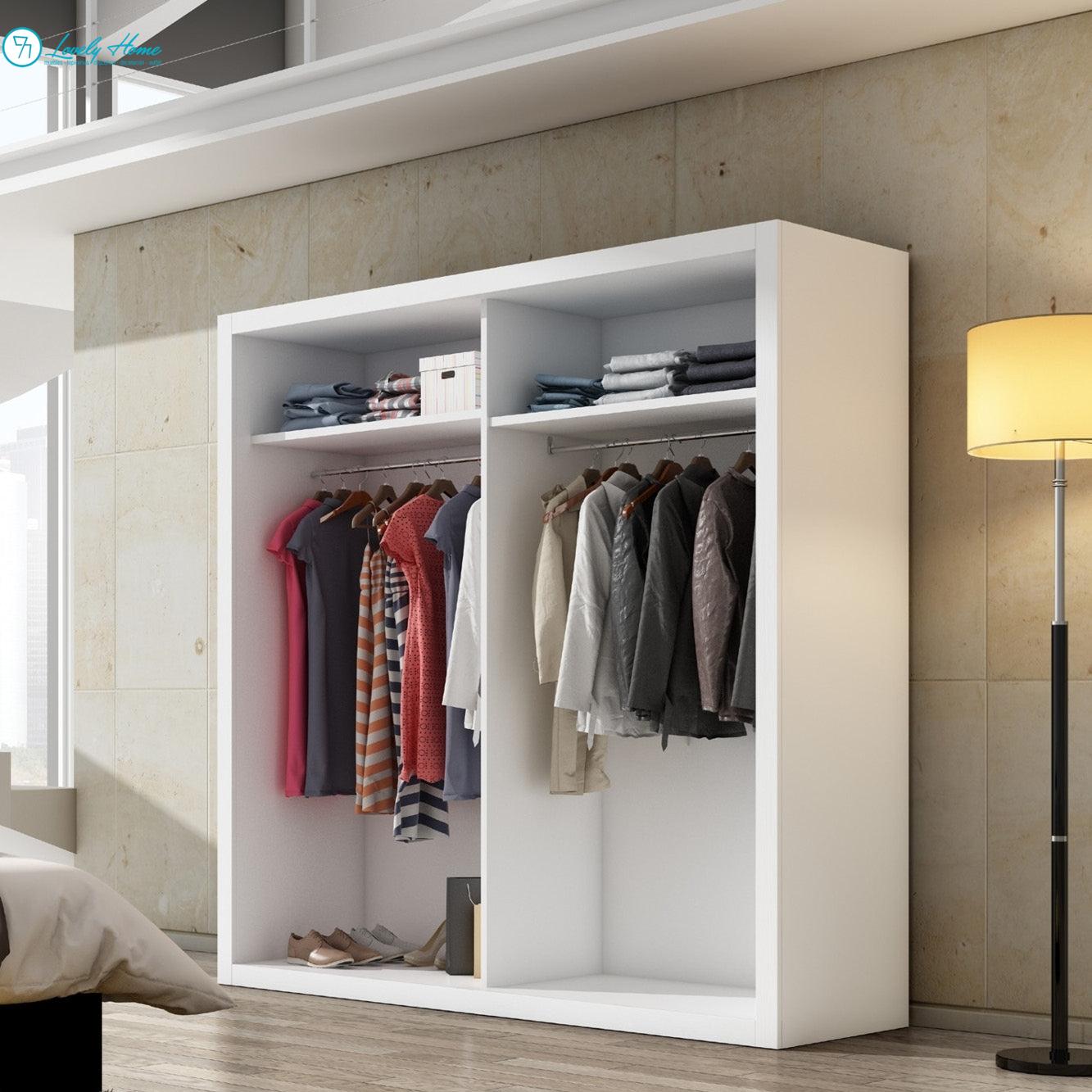 El armario tiene 200 cm de ancho y está cuidadosamente diseñado para organizar toda tu ropa: