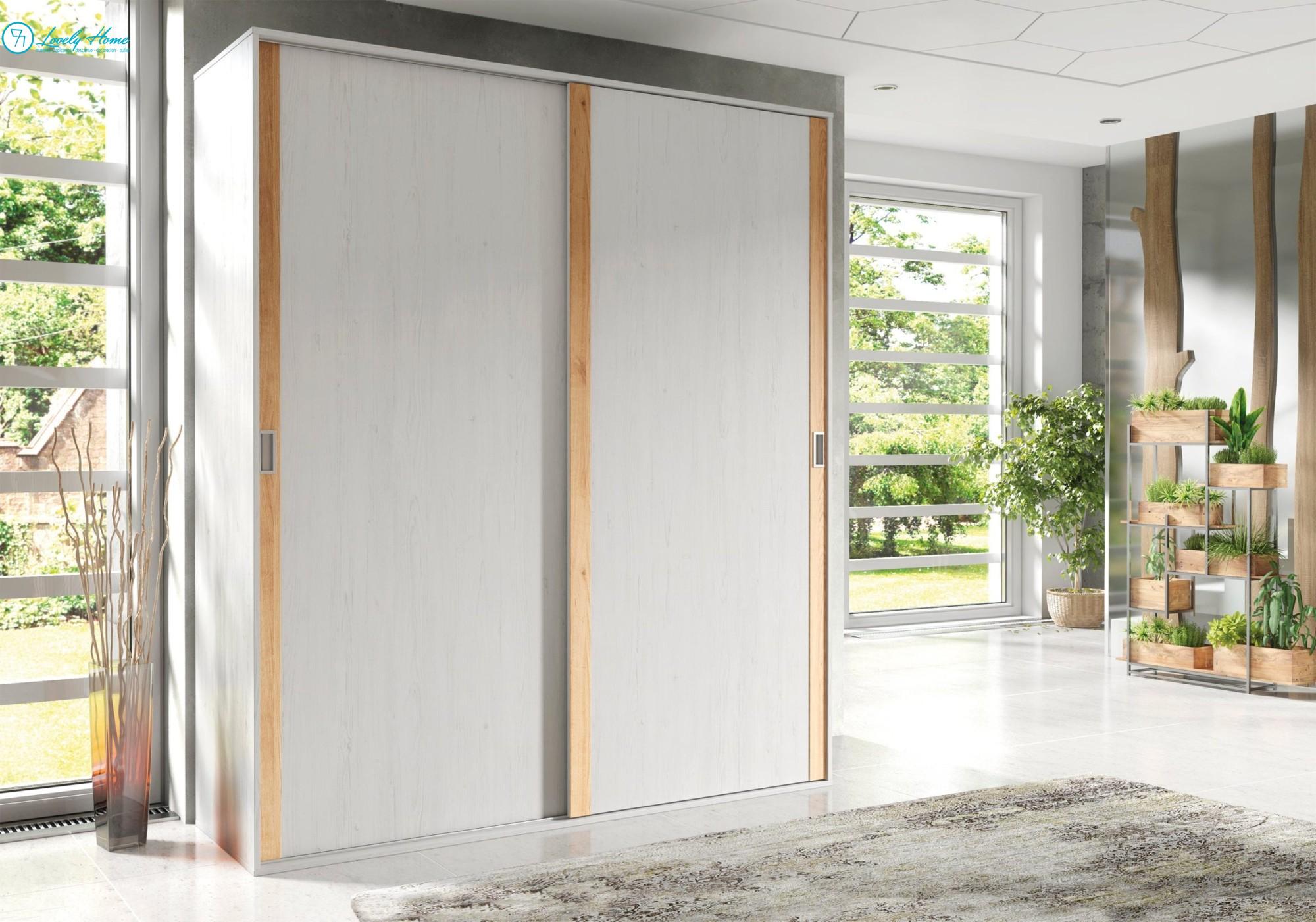 Armario puertas correderas fabricado con tableros de densidad media melaminizados de 16 mm de color cambrian. Guías correderas metálicas de primera calidad para facilitar su cierre y apertura.