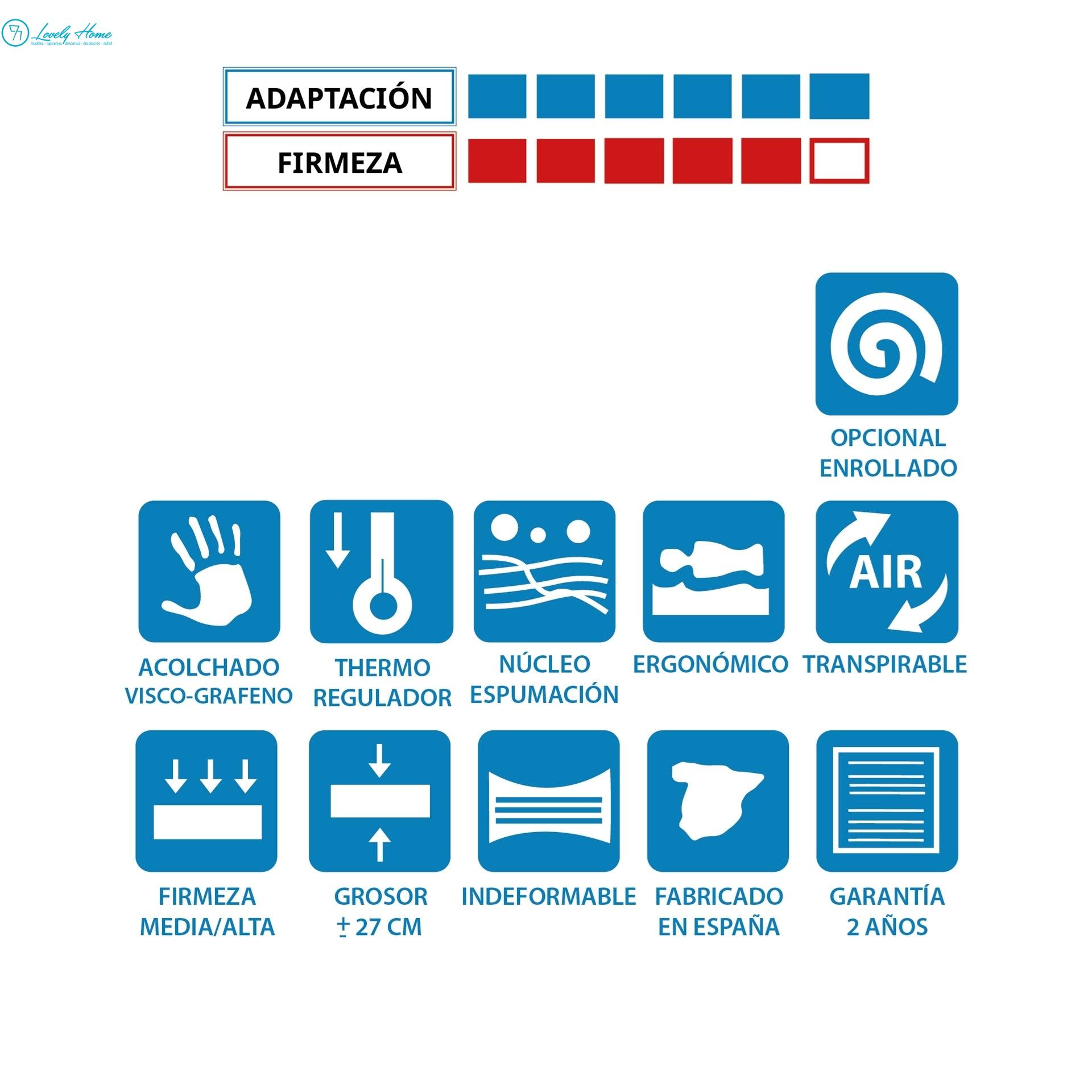En Muebles Lovely Home tenemos los mejores colchones de la provincia, seleccionados para ofrecerte una durabilidad superior al precio más competitivo. Si estás rastreando los colchones más baratos en Sevilla pero no quieres renunciar a un núcleo firme y una altura premium de 27 cm, el modelo Grafeno ofrece una relación calidad-precio imbatible.