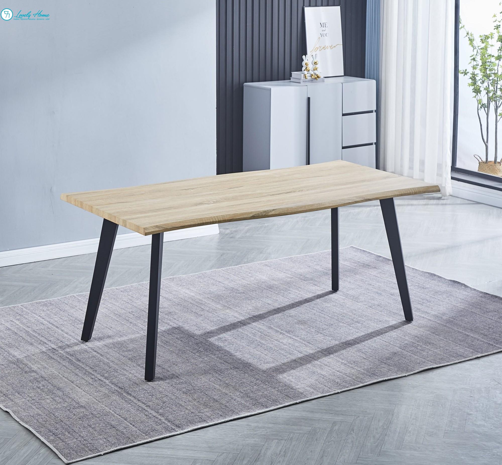 Material del Tablero: Madera con acabado natural, vetas visibles y bordes irregulares (Live Edge).