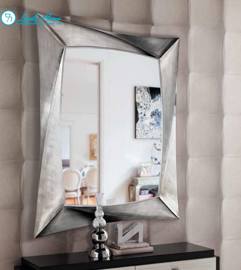 Un Diseño que Cobra Vida El modelo Argento rompe con la monotonía de los marcos planos. Su espectacular marco plateado destaca por un diseño geométrico y facetado, con ángulos que juegan con la profundidad y el relieve. Este acabado en plata brillante no solo es sinónimo de lujo, sino que actúa como un prisma, capturando la luz natural o artificial y proyectándola por toda la estancia. Es, sin duda, una pieza escultórica que atraerá todas las miradas.