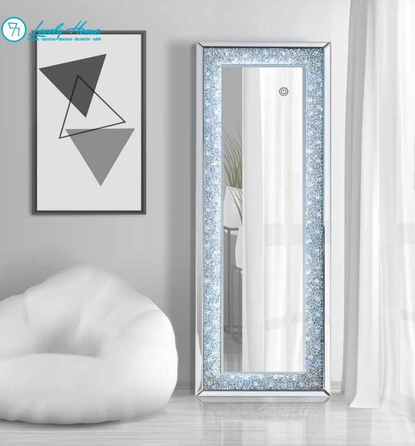 Espejo vestidor LED Perla: marco efecto cristal brillante e iluminación táctil perimetral. Elegante y funcional, ofrece luz perfecta y amplitud para dormitorios o vestidores modernos.
