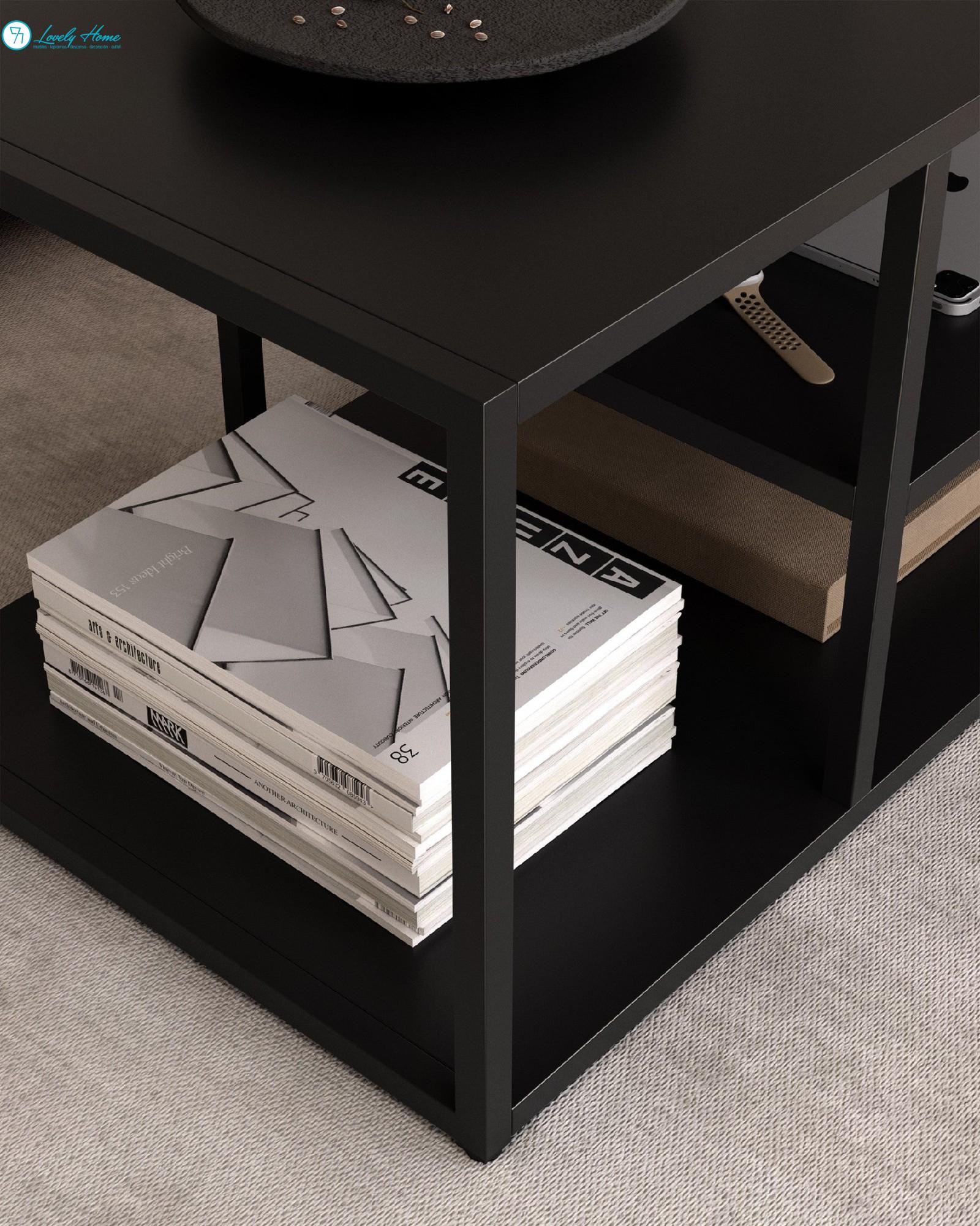 Orden al instante: Cuenta con un estante inferior muy amplio, ideal para dejar libros, revistas, mandos o portátiles, manteniendo la superficie superior siempre despejada y elegante.