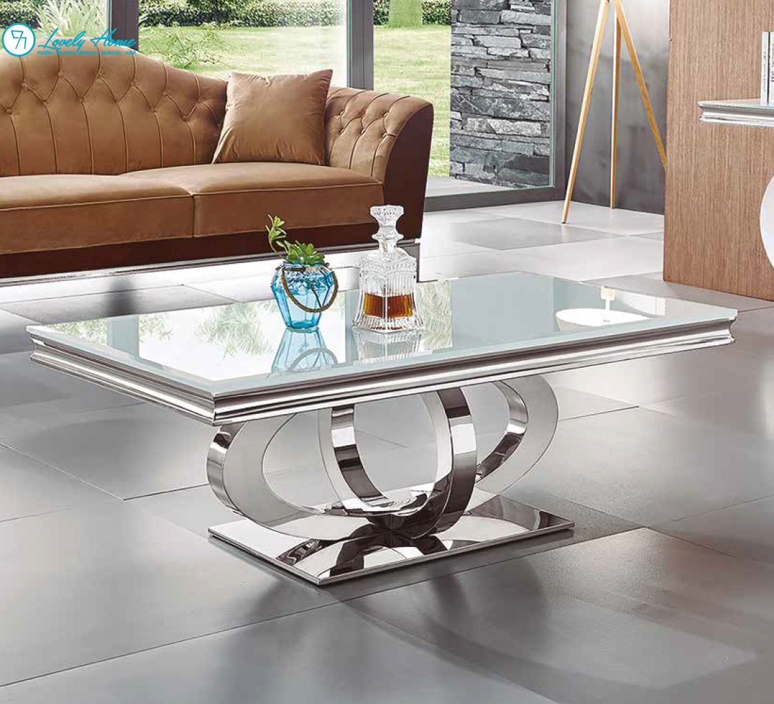 Mesa de Centro Claudia: Diseño Exclusivo en Acero y Cristal Lacobel