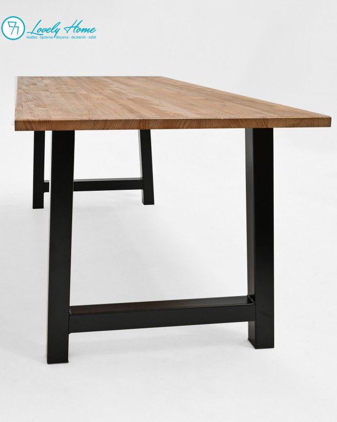 El diseño se completa con unas patas de hierro forjado con acabado lacado en negro mate. Esta estructura no solo proporciona una firmeza inquebrantable, sino que aporta ese toque urbano y moderno del estilo industrial. La combinación del hierro negro con la madera oscura crea un contraste visual potente, ideal para comedores modernos, lofts o espacios que buscan distinción.