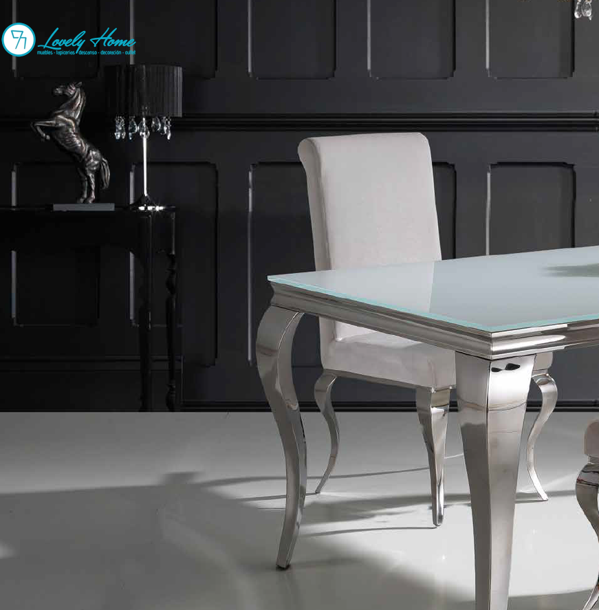 La Mesa Velvet no deja indiferente a nadie. Su diseño destaca por sus patas de acero cromado con curvatura estilo «Cabriole», una forma sinuosa y elegante que aporta movimiento y fluidez visual, rompiendo con la rigidez de las mesas tradicionales. El acabado en brillo del acero añade un toque de glamour contemporáneo que ilumina toda la estancia.