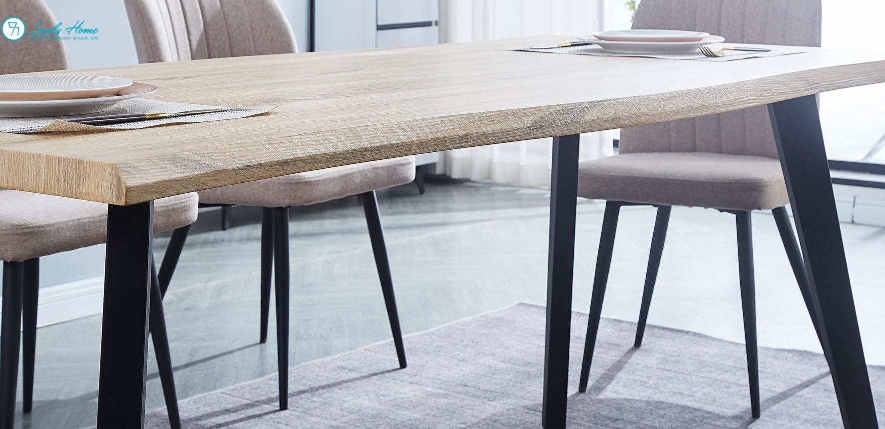 Este contraste de materiales aporta calidez y modernidad a partes iguales. Es la mesa ideal si buscas actualizar tu decoración, encajando tanto en ambientes tipo loft, como en comedores modernos o rústicos renovados.