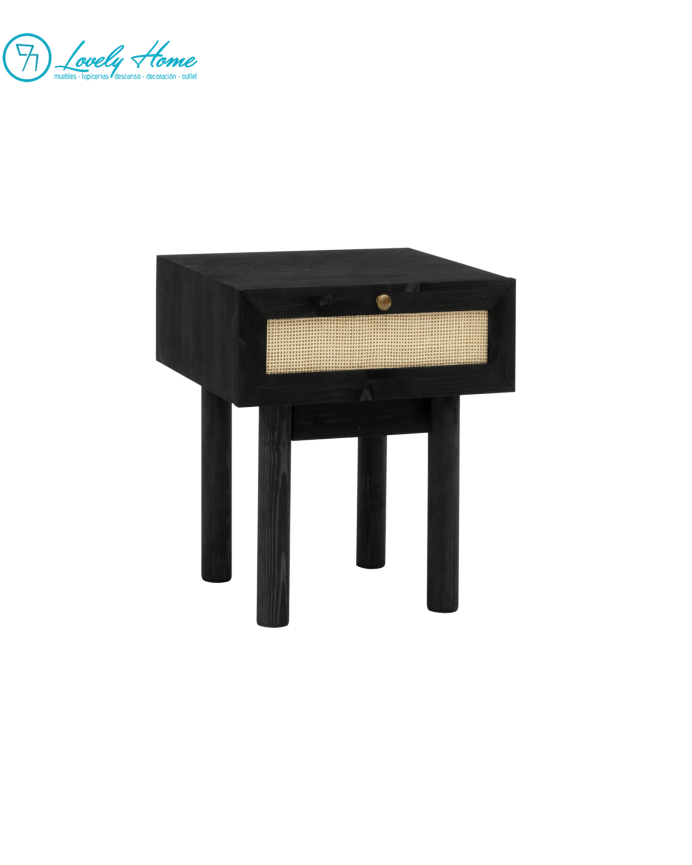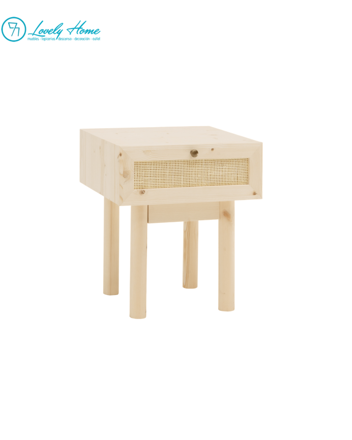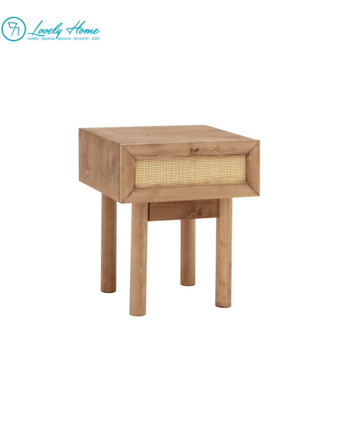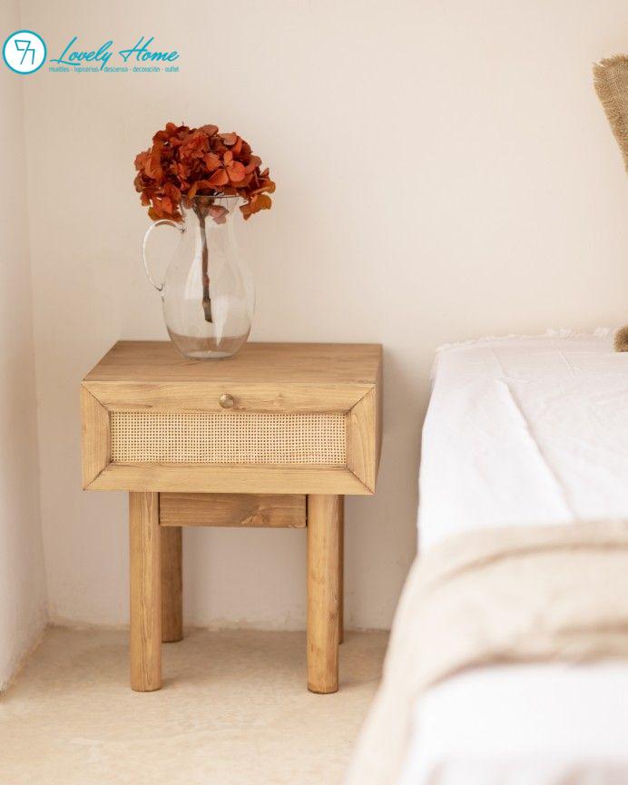 La mesita de noche Begurna combina la robustez de la madera maciza de abeto con el encanto artesanal del tejido de médula de ratán, creando una pieza sofisticada y funcional. Diseñada para aportar estilo y calidez, es ideal para complementar tanto decoraciones modernas como espacios de estilo bohemio o natural.