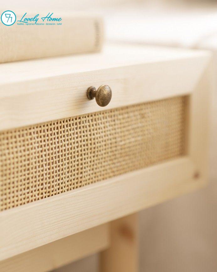 • Tirador del cajón: Metálico con acabado en oro vintage, que aporta un sutil toque de elegancia y contraste.