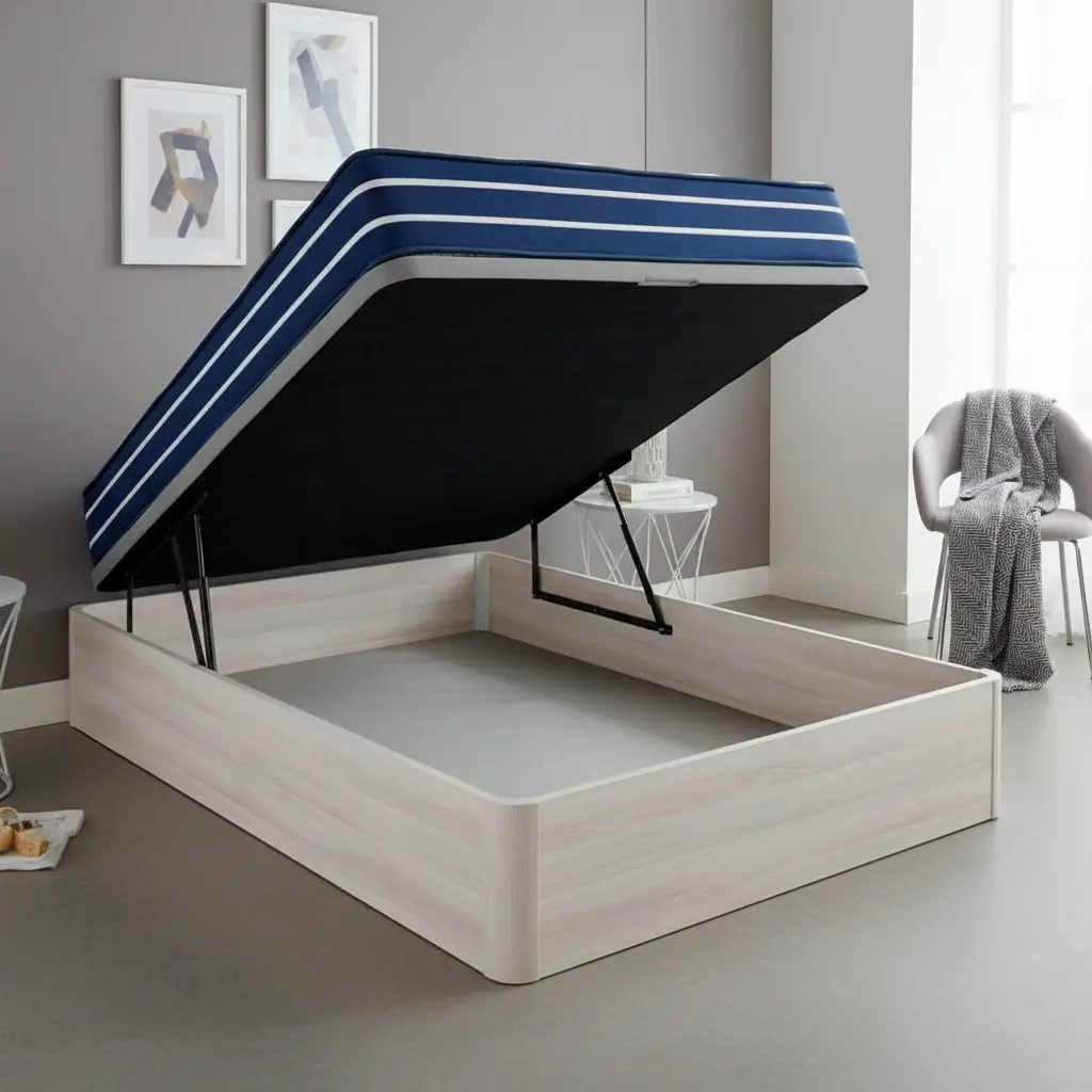 Canapé de Gran Capacidad: Diseño y Orden Acompañando al colchón, incluimos un canapé abatible de estructura reforzada, la solución perfecta para ganar un armario extra en tu dormitorio. Disponible en tres acabados modernos para que encaje con tu decoración: Ártico (madera clara agrisada), Cambrian (roble natural) y Blanco.