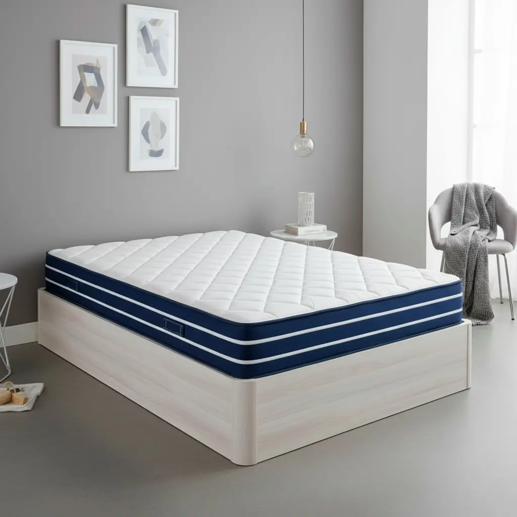 La revolución del descanso: Muelles Ensacados + Viscoelástica El corazón de este pack es su colchón de 28 cm de altura, una bestia del confort. Su núcleo de muelles ensacados garantiza una independencia de lechos total (si tu pareja se mueve, tú no lo notas) y una transpiración óptima. Además, cuenta con viscoelástica a dos caras, lo que no solo mejora la acogida y reduce los puntos de presión, sino que permite voltear el colchón para alargar su vida útil.