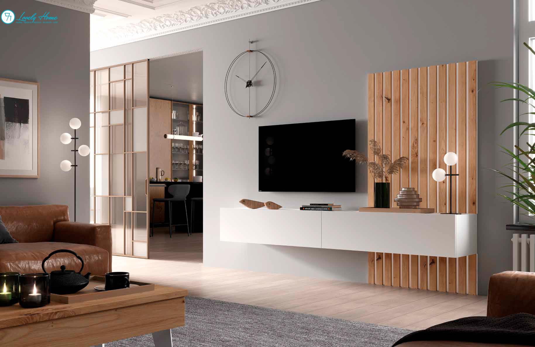 Además, incluye un sistema de paneles traseros para la TV que protegen la pared y enmarcan tu televisión, creando un efecto de mueble integrado de alta gama muy sofisticado.