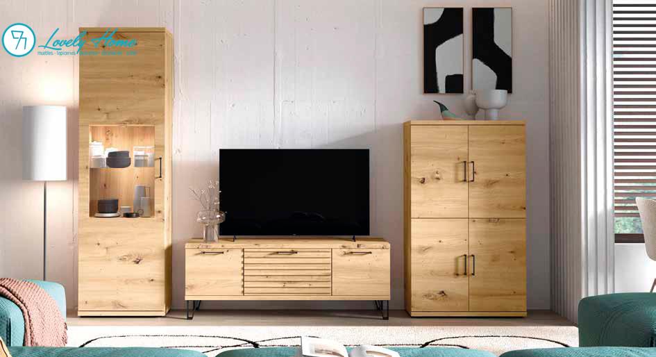 ¿Buscas un salón que transmita hogar pero con un diseño actual? En Muebles Lovely Home te presentamos el Salón Kronos 604. Una composición que fusiona la belleza rústica de la madera de roble con detalles de tendencia industrial para crear un espacio único.